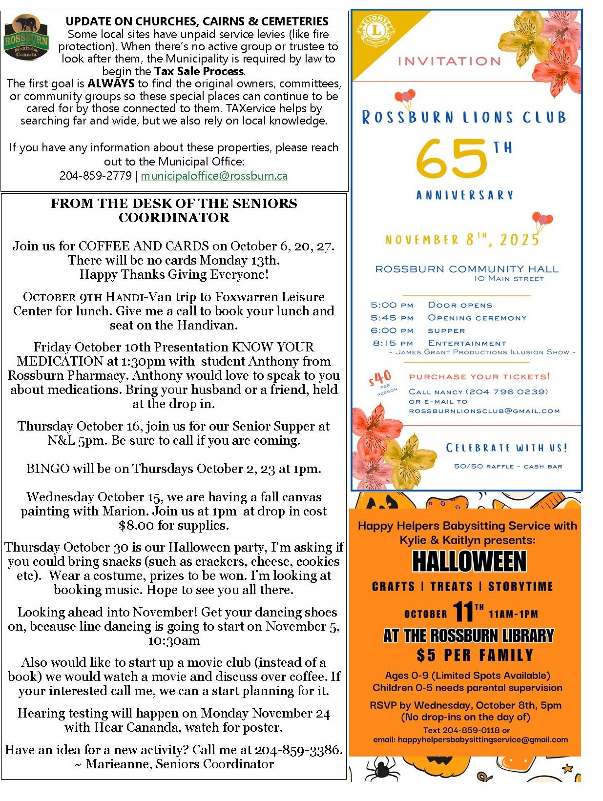 The Rossburn Matters is a free information source to inspire participation in community initiatives. Proudly supported by the Rossburn Municipality and the Rossburn Library.