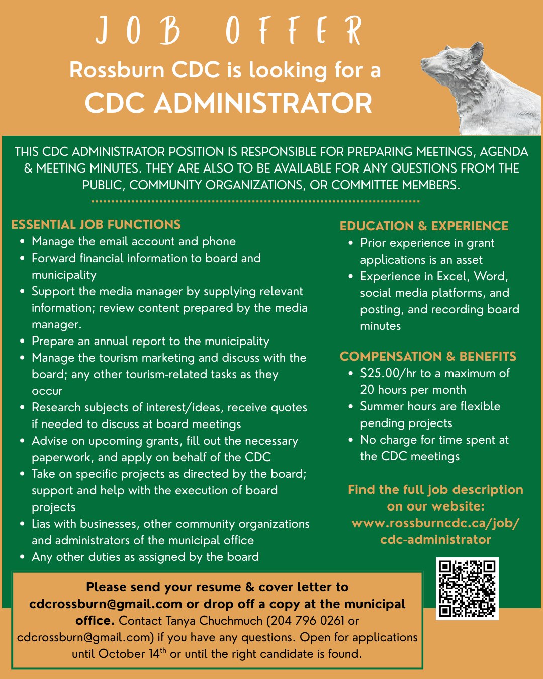 The Rossburn CDC has a current Employment Opportunity: CDC Administrator