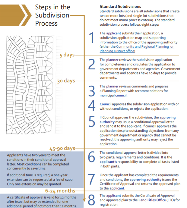 Below is a quick reference summary of the ‘Steps in the Subdivision Process’.
