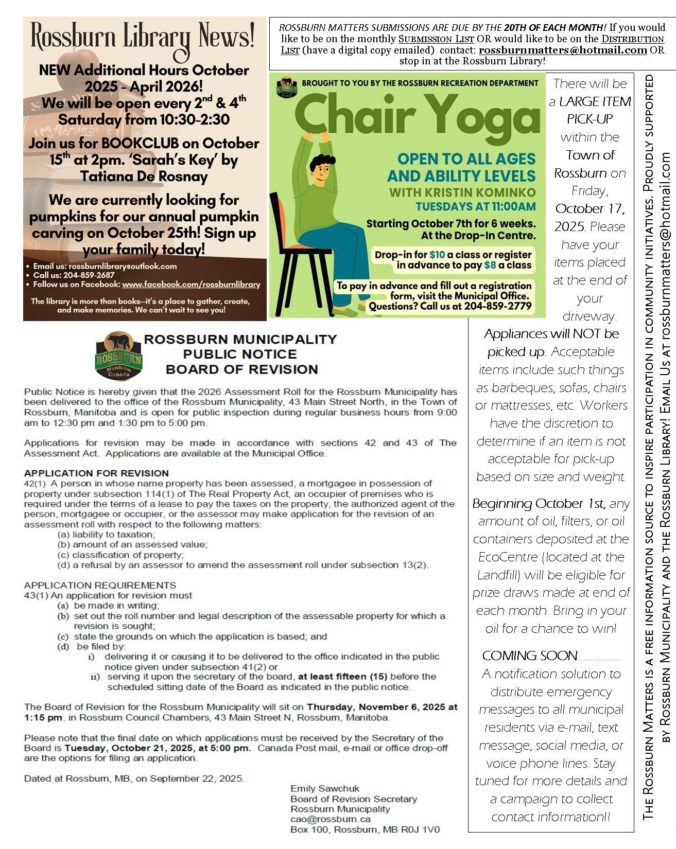 The Rossburn Matters is a free information source to inspire participation in community initiatives. Proudly supported by the Rossburn Municipality and the Rossburn Library.